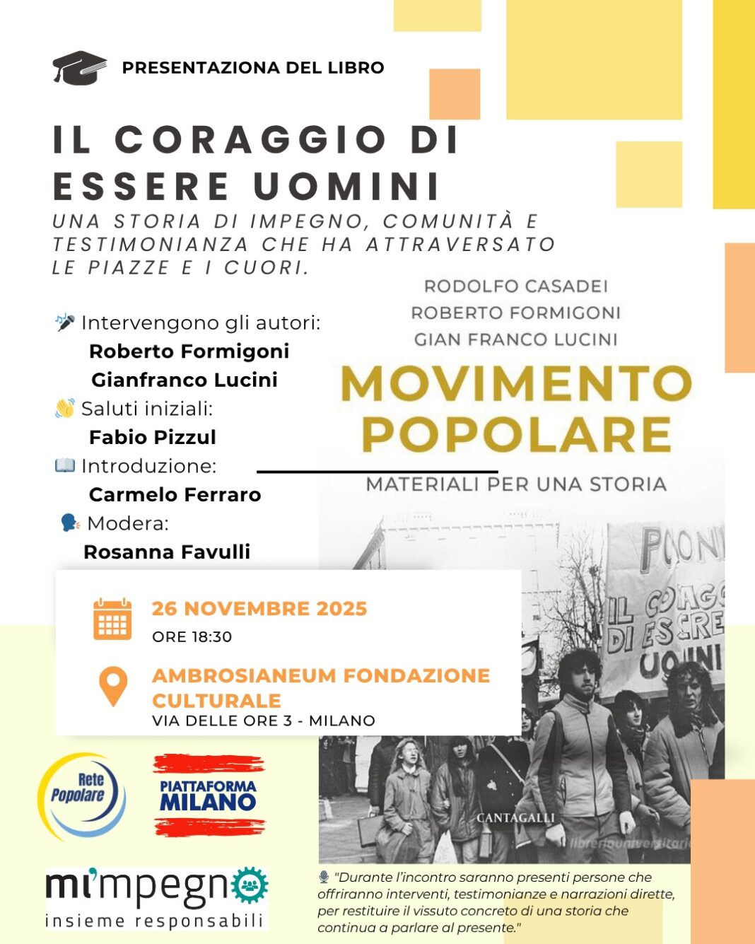 Nel corso dell’evento, promosso dal Comitato MI’mpegno in collaborazione con Rete Popolare e Piattaforma Milano, interverranno due degli autori, Roberto Formigoni e Gian Franco Lucini, insieme a Fabio Pizzul e Carmelo Ferraro, moderati da Rosanna Favulli. Non mancheranno inoltre interventi, testimonianze e narrazioni dirette per restituire il vissuto concreto di una storia che continua a parlare al presente.