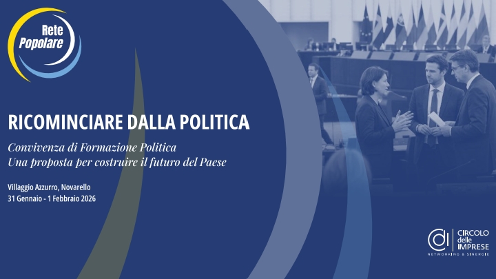 Non un semplice convegno, ma un momento di confronto e approfondimento attivo e partecipato nel quale affrontare una riflessione costruttiva sulle sfide del presente che investono economia, società ed istituzioni, delineando nuovi scenari in cui operano amministrazioni, imprese e corpi intermedi. È l’obiettivo della due giorni organizzata da Rete Popolare insieme al Circolo delle Imprese, dal titolo “Ricominciare dalla politica: una proposta per costruire il futuro del Paese”, in programma sabato 31 gennaio e domenica 1° febbraio 2026 presso il Villaggio Azzurro-Novarello, a Granozzo con Monticello (NO).